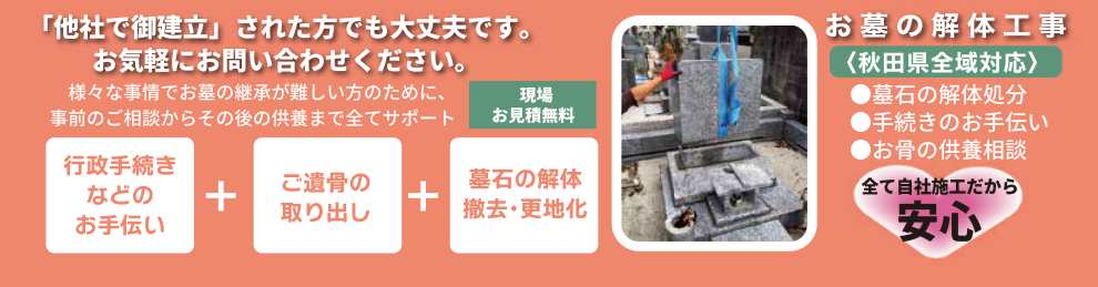 墓じまいでのお悩みは「秋田石材」にご相談ください!【秋田県内全域対応】