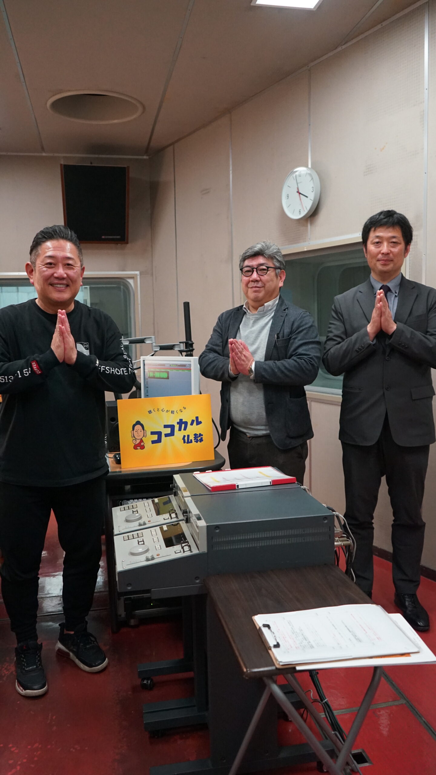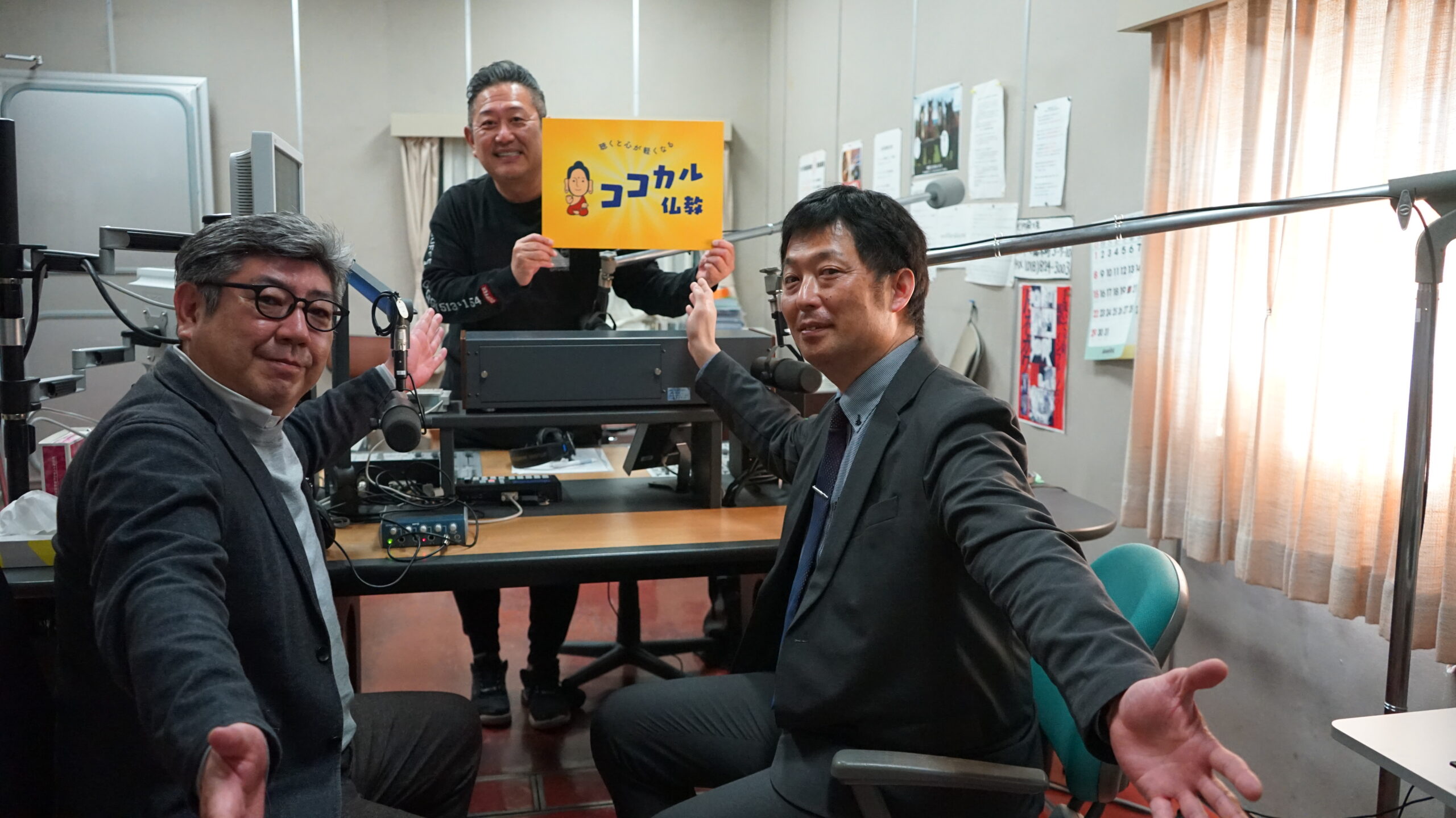 2026年4月22日(水)にエフエム秋田で放送されたラジオ番組「ココカル仏教」に、営業部の佐藤洋市副部長と土崎店の風間智洋店長とが出演いたしました!