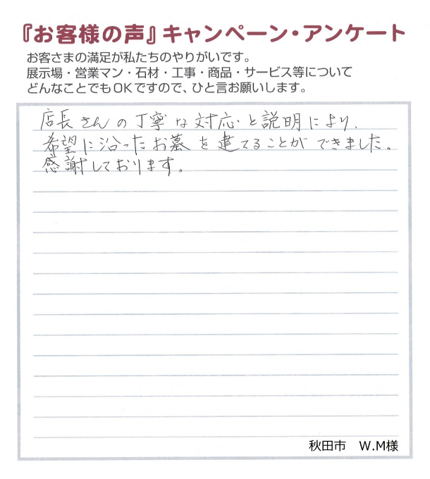 父が亡くなりお墓をどうするか困っていた時に秋田石材さんの広告を見て