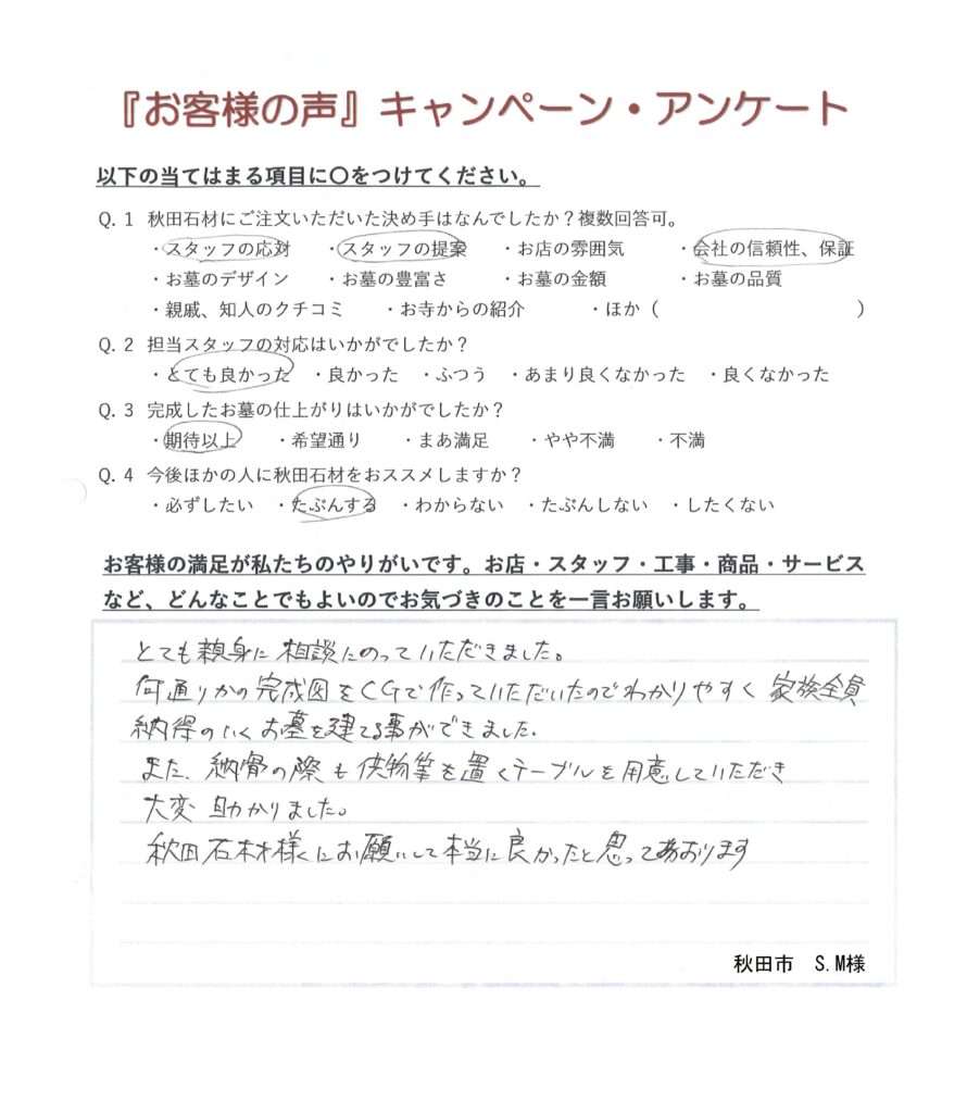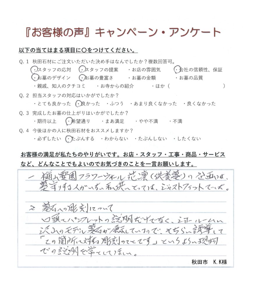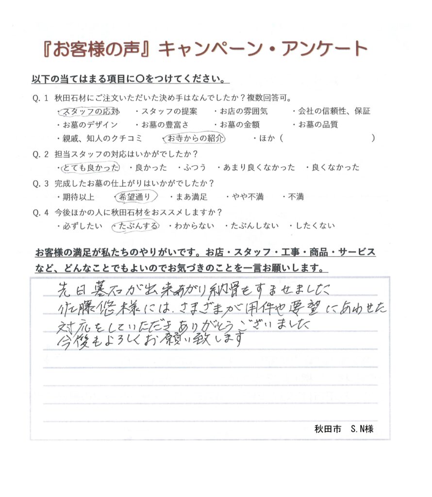この度、人生の終活を考えた時、北海道から秋田の地に来て約50年になり思いきってお墓を建てる事にしました。