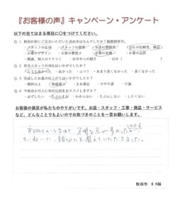 始めの相談からしばらくして時間日にちがたってましたが、小松さんからのメールで市営墓地の結果が分かりましたらご連絡いただければと思いますとご連絡いただき、その後も電話でその後お墓の方どうですかと丁寧な対応があり、現在完成までも、とてもわかりやすく安心がもてる人柄であり秋田石材様の看板スタップだと思います。